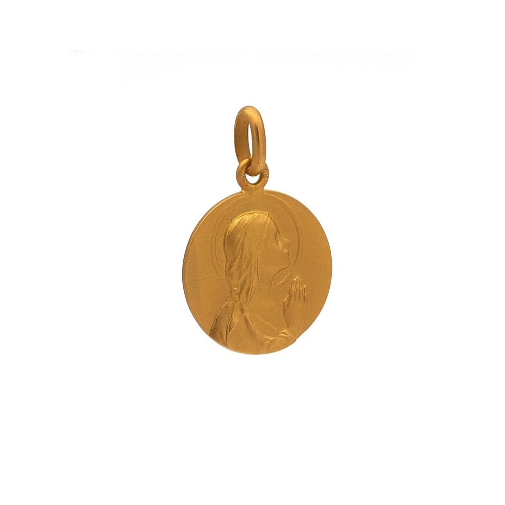 Medalla de oro amarillo de la Virgen Niña manos 14 mm.
